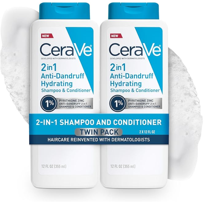 CeraVe 2 In 1 Hydrating Anti Dandruff Shampoo And Conditioner Twin Pack, 1% Pyrithione Zinc Dandruff Treatment Helps Eliminate Dandruff, Color Safe & Sulfate Free, 12 Fl Oz Each (Set of 2)