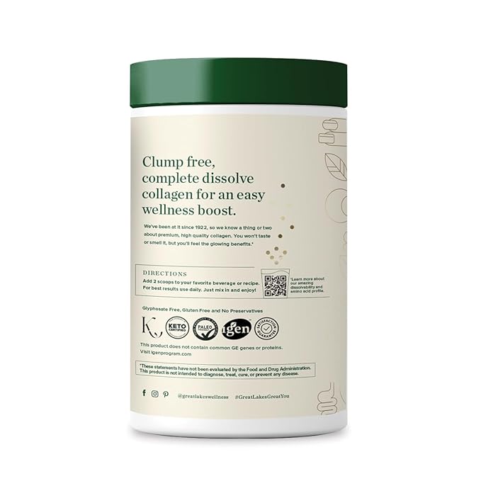 - HYDROLYZED FORMULA: An easy way to supplement collagen into your diet. Great Lakes Wellness Collagen Peptides Powder provides support for collagen production as we age. Good for men and women.