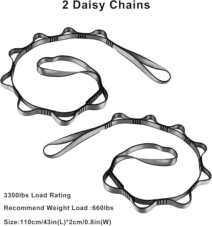 - There are many Aerial Yoga Hammocks on the market, but our Basic Aerial Yoga Hammock is made from Certified Quality Material And Hardware. 1 x 5.5 yards Elastic aerial hammock , 2 x Steel Screw-lock Carabiners (25KN), 2 x 3ft Nylon Reinforced Daisy Chains (23KN).Max rated for 2,059 pound dynamic load.
