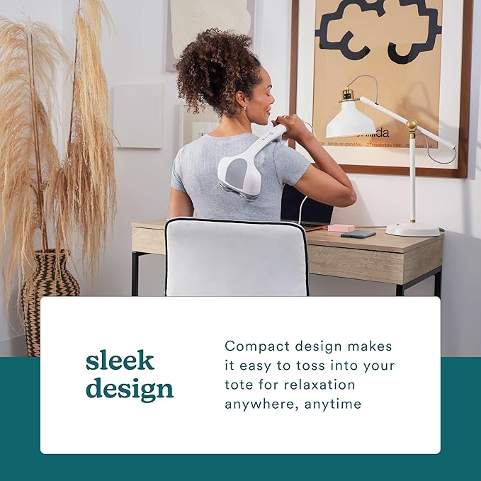 - Lightweight and Portable: Handheld percussion massager with heat weighs less than 2.5 lbs for portability; ergonomic rubber handle allows for easy handling and gripping in hard-to-reach areas