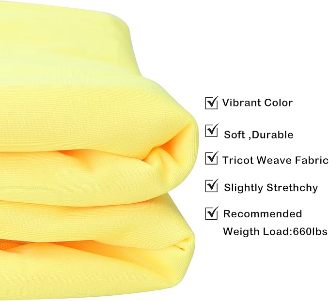 - HIGH QUALITY MATERIAL – It is long lasting, comfortable, and can be used by the whole family. The fabric is 100% Nylon Tricot fabric and between 102 to 108 inches wide. It is tightly woven, durable, soft, and easy to clean. It stretches on the width not length so it will form to your body for comfort while maintaining the strength necessary for sitting in the hammock.The fabric is rated for 2,057 pound dynamic load.