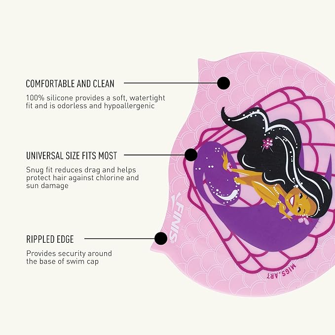 - Fun Kids Swim Cap: Underwater adventures await with the FINIS Mermaid Silicone Cap; turn heads with a fun and colorful design