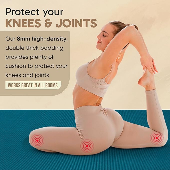 - Extra Thick & Ultra Comfortable – The perfect balance of squishy comfort and stable support. Our 8mm high-density, double thick padding provides plenty of cushion to protect your knees and joints – even on concrete, tile or hardwood floors. Works great in all rooms and flooring including living room carpet, garage or basement.