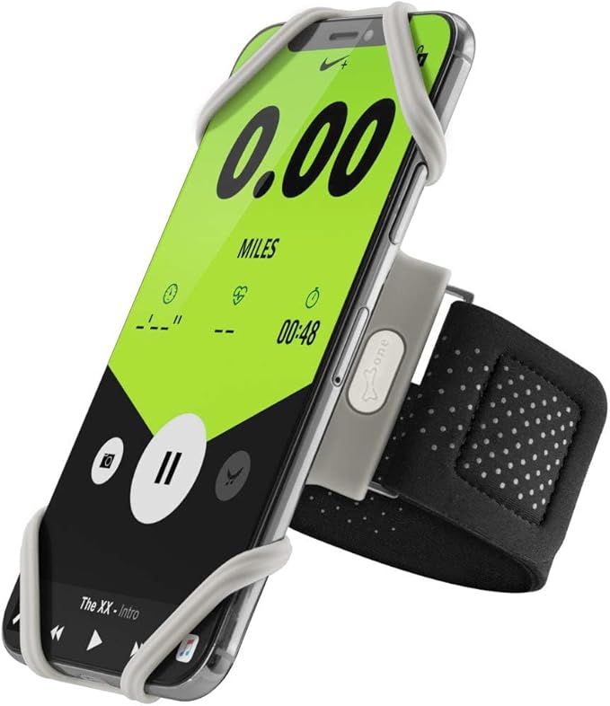 BONE Run Tie, Running Cell Phone Holder, Skin-Friendly & Washable Silicone Sport Armband, Universal Workout Phone Carrier Compatible with Most Smartphone (Gray - Size S/Arm Size 7.9-9.8'')