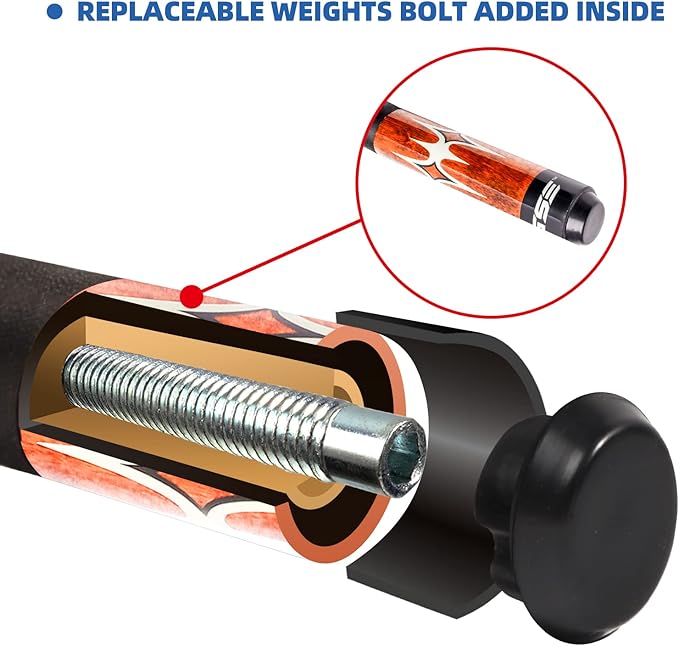 • Premium Material: The pool cue shaft is made of A grade Canadian hardwood maple; the cue butt is made of Australian hardwood with a decal sleeve