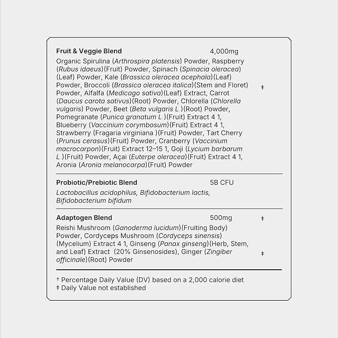 - TOTAL BODY SUPPORT: Power your performance for the long-haul with our daily protein and greens powder for women and men. The newest addition to your restoration kit, packed with essential nutrients your active lifestyle demands. Clean complete nutrition to fuel your foundation, packed with vitamins, minerals, antioxidants, superfoods, adaptogens, pre + probiotics, and amino acids.