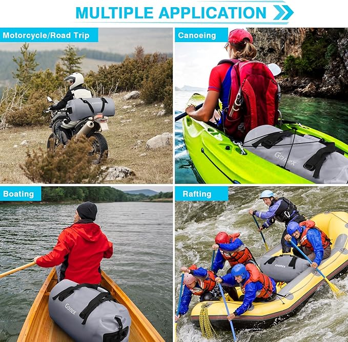 • Multiple uses: With its effective waterproofing, this waterproof dry bag is suitable for a wide range of outdoor activities, such as kayaking, paddleboarding, boating, motorcycle riding, rafting, fishing, diving, and other adventures