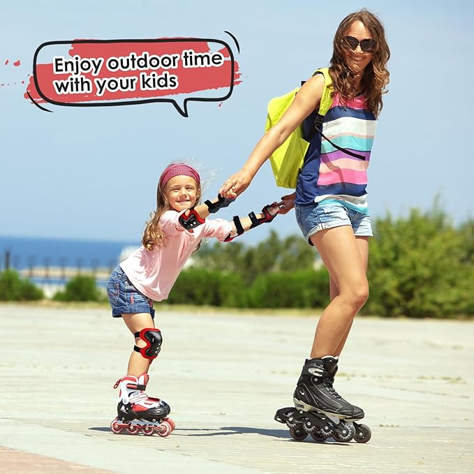 - ♥ Multifunctional Protective Gear: FOR KIDS/CHILD, the knee elbow pads with wirst guards are designed for kids sports saftey protection especially for ice and roller cycling skating, Skateboard Hoverboard, biking, cycling, skating, rolling, ATV, BMX and other extrem sports