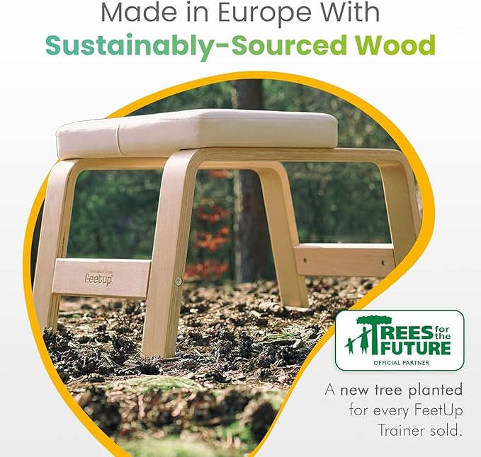 - Made with Earth-Friendly Materials - FeetUp’s headstand inversion bench won’t just benefit you. It’s good for the environment, too. These yoga inversion chairs are composed of sustainable vegan leather and dark or light beech wood.