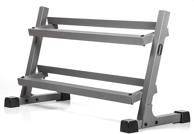 - HEAVY-DUTY 2-TIER DUMBBELL RACK: The compact horizontal dumbbell rack features two angled tiers for quick access and easy storage. Built from high-quality steel, it keeps your workout space organized while saving floor space ??perfect for home gyms with limited room.