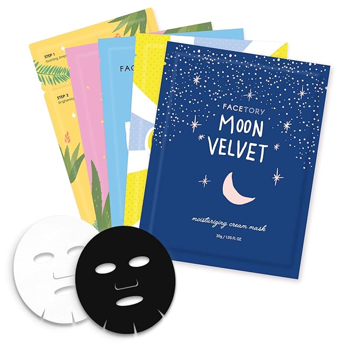 FACETORY Collection Facial Mask Set - Hydrating, Purifying, Soothing, Moisturizing, and Revitalizing - Soft, Form-Fitting Face Masks, For All Skin Types - No Sulfates No Parabens (10 pc)