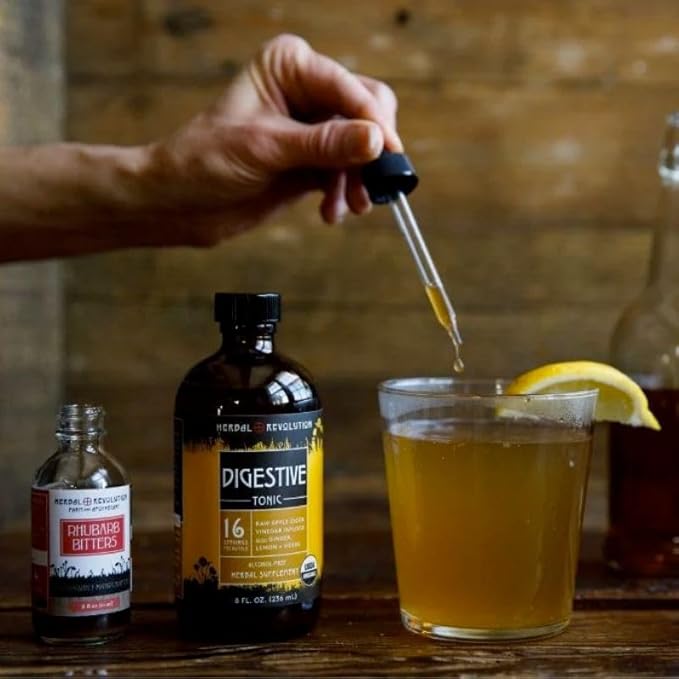 Herbal Revolution Digestive Tonic - Certified Organic Non-GMO Apple Cider Vinegar Infused with Honey, Burdock Root, Dandelion, Lemon Balm & More, Made Using Regenerative Farming Practices - 8 Fl Oz