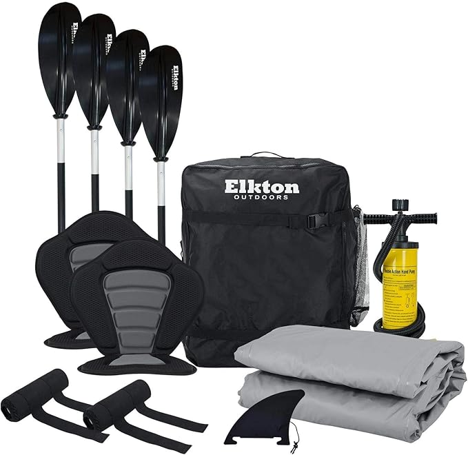 - STAND UP CASTING - The Rigid Dropstitch Floor is an excellent fishing platform for both seated and standing casting. The floor also protects the rider and their vessel from underwater obstacles and functions as an excellent and platform to support kayak fishing accessories. Unlike other inflatable fishing kayaks for adults, The Elkton Outdoors Steelhead series will not rip or tear when encountering underwater obstacles.