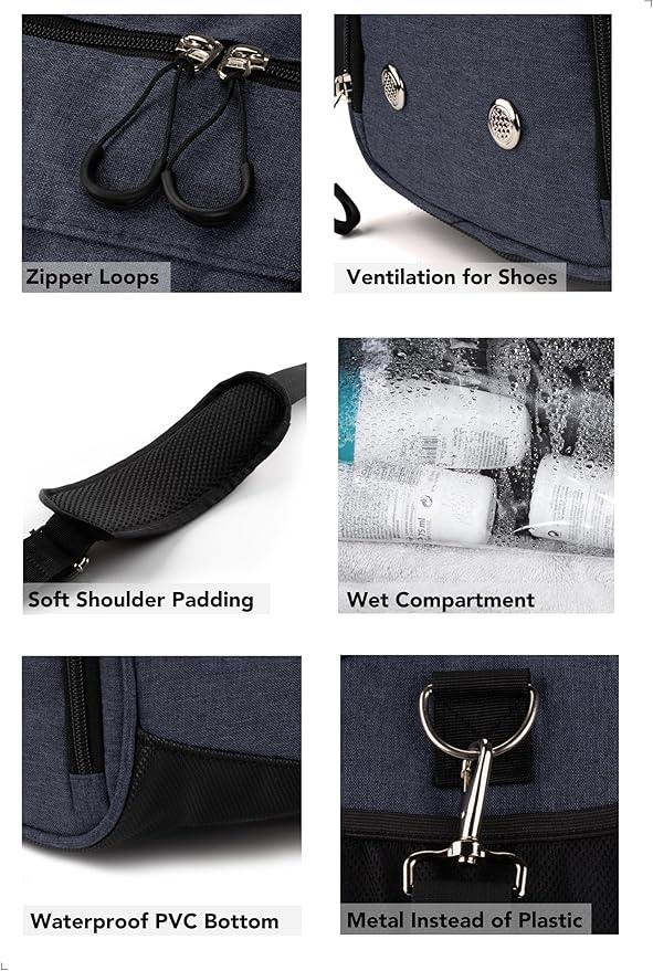 - 6 SEPARATE POCKETS: 1 spacious main compartment with a small inner pouch. 1 waterproof wet pocket, 1 breathable shoe pocket, 1 medium-sized front pocket, and 1 side mesh pocket.