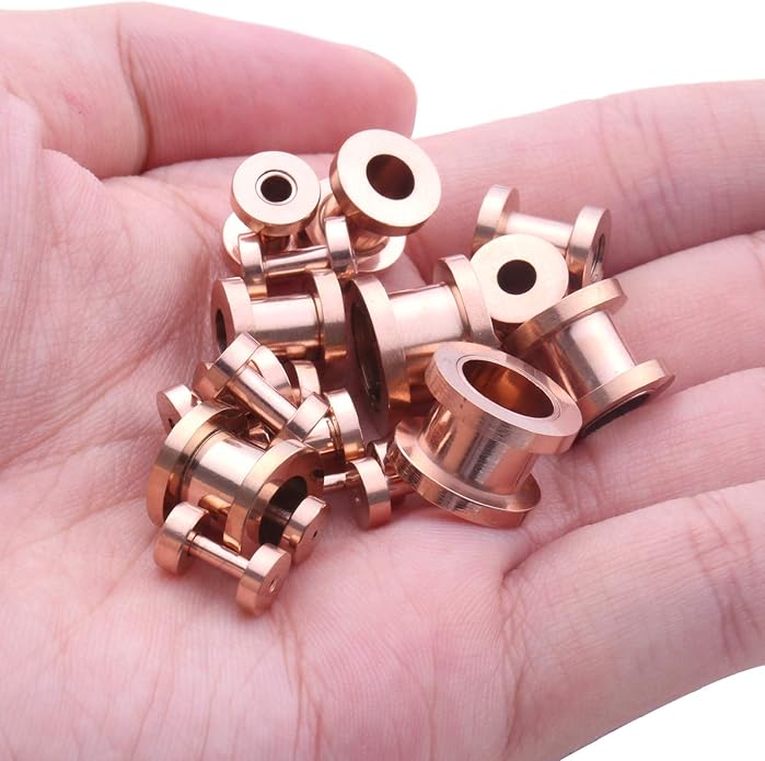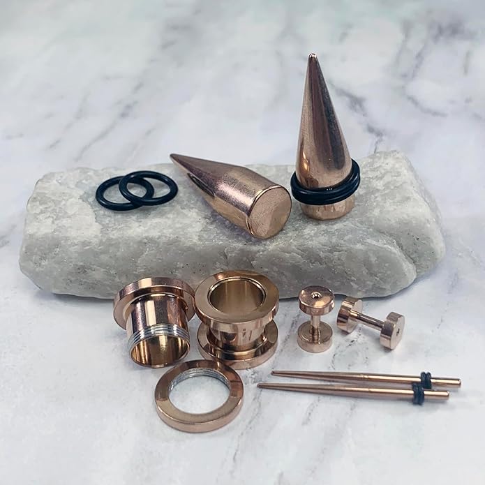 - VERIFIED SIZES: Tunnels, Tapers (O-Rings Included): 14G (1.6mm), 12G (2mm), 10G (2.4mm), 8G (3.2mm), 6G (4mm), 4G (5mm), 2G (6mm), 0G (8mm), 00G (10mm). COLOR: Rose Goldtone. SCREW FIT: Threaded Flesh Tunnels Unscrew at One End. Easily Insert Into Your Ear and Screw Back