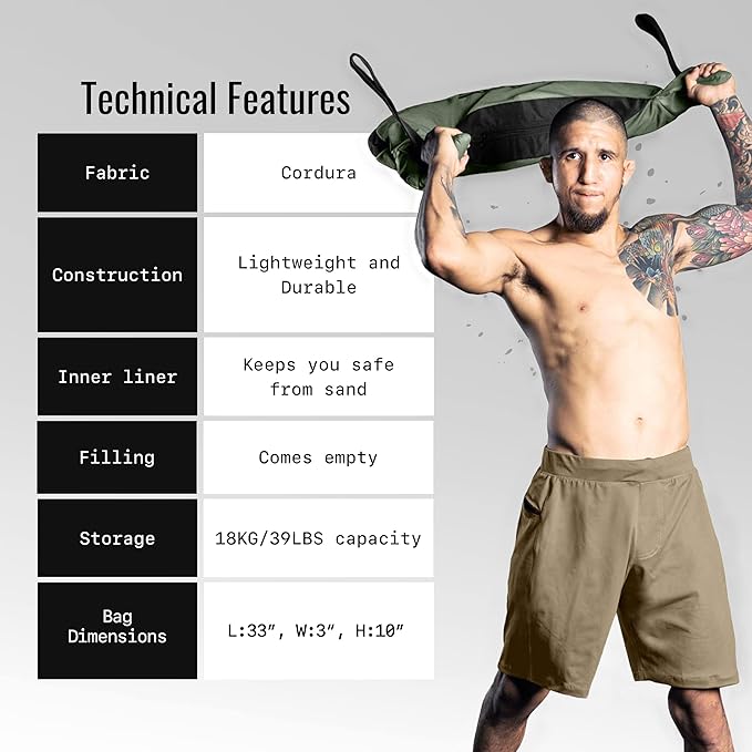 - [VERSATILE & PORTABLE IDEAL FOR ALL GYM, BEACH & OUTDOORS] The Bulgarian sand bags for weight training are go-anywhere gym equipment. Easy to fill or empty sandbags with an inner liner & zipper at any gym, field, beach or park. The heavy duty Bulgarian sand bags for weight lifting, MMA sand bags & martial arts sandbags add a new dimension to your beach sandbag. The strongman sandbags are versatile & portable fitness equipment for fitness enthusiasts & alternative to traditional gym equipment.