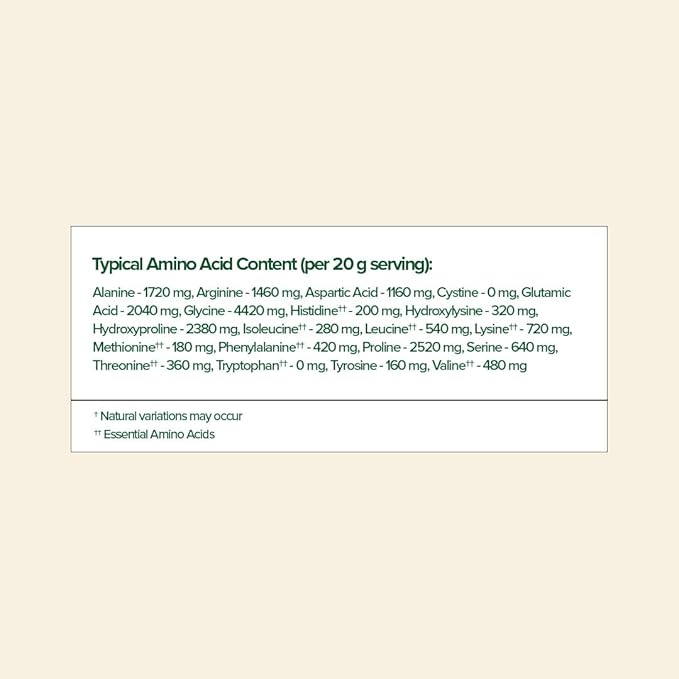 - COLLAGEN PEPTIDES: For your daily routine, 20 grams of unflavored collagen hydrolysate per serving. Types I and III hydrolyzed collagen provide the amino acids necessary to help support the 5 signs of aging well: skin, hair, nails, joints, and digestion.