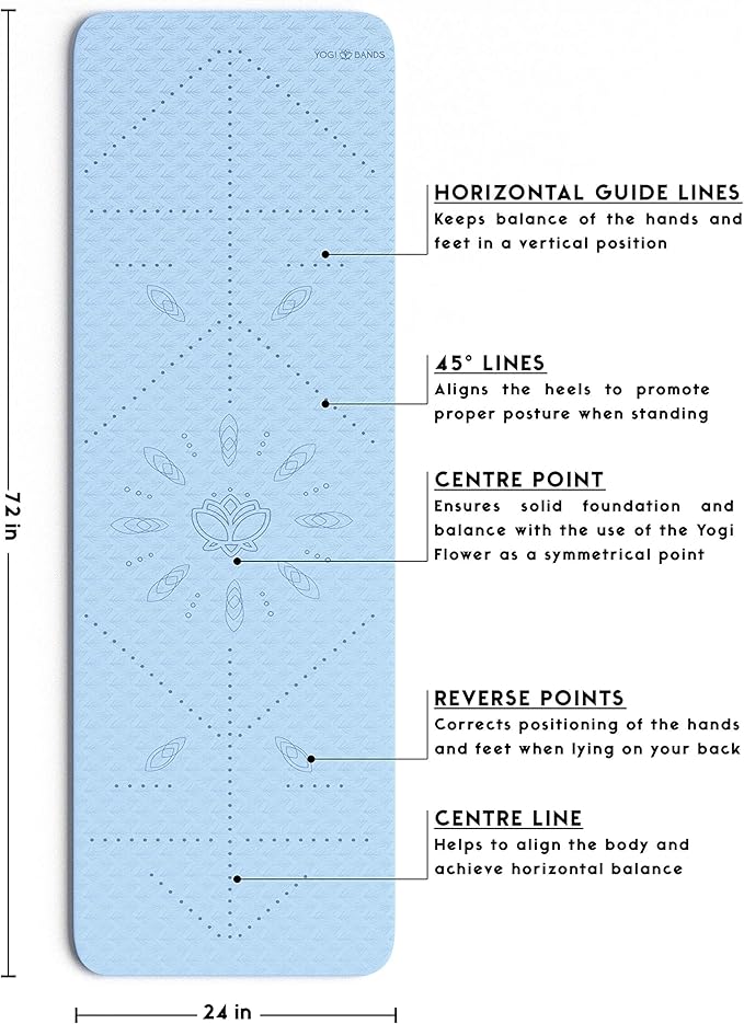 - 🧘🏼 BETTER POSES & POSTURE - Practice better yoga even without the help of an instructor. Our TPE yoga mat features guidance lines that let you focus on the alignment and balance of your body.