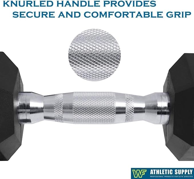 WF Athletic Supply Rubber Coated Hex Dumbbell Set, Multiple Choices Available - Dumbbells with Rack Stand and Mat, or Dumbbells Only (200/550/1200/2100/3000 LB)