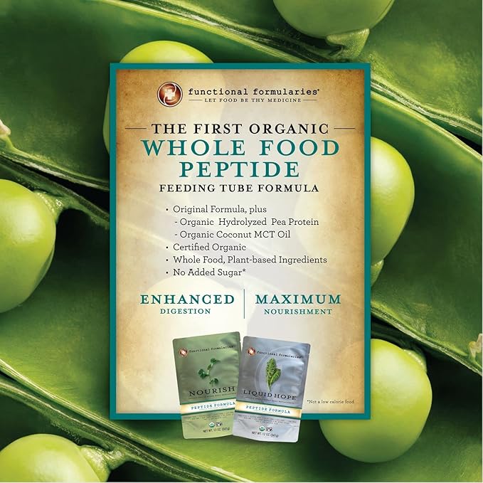 - Feeding Tube Formula - Organic, Whole food, Plant-based Peptide formula. Complete Peptide protein with Organic coconut MCT oil to support enhanced digestion and maximum nourishment