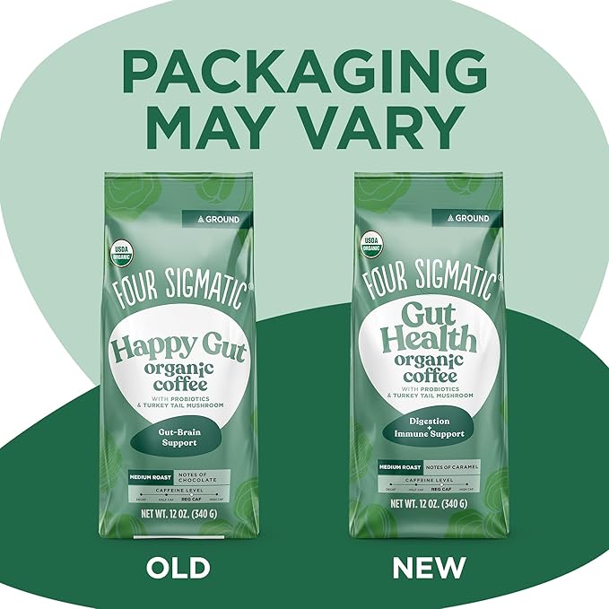 Four Sigmatic Gut Health Organic Ground Coffee | Medium Roast, Immune Boosting Probiotic Mushroom Coffee with Chaga & Turkey Tail for Gut Health & Immune Support | 12oz Bag