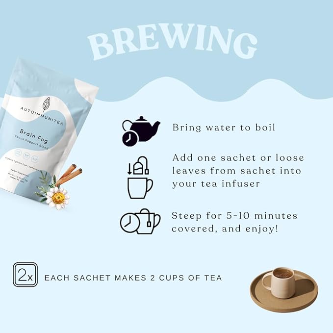 Brain Fog Tea for Herbal Focus & Memory, AIP AutoimmuniTea Protocol Diet Compliant Foods, Whole 30, Paleo Friendly - Nootropics Support Herbs Gingko Biloba, Peppermint, Gotu Kola