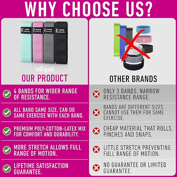- NON-SLIP. The perfect blend of cotton and latex ensures our booty bands will not slip down your legs as you excersize. These resistance loops are designed for functionality as well as comfort. Great for strength training, yoga and pilates.