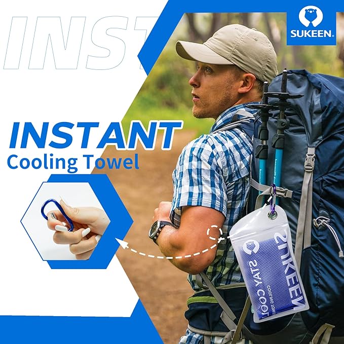 - Instant Cooling: Made of premium microfiber, soft and breathable, the Sukeen cooling towels can be easily activated by soaking, wringing and patting; The unique cooling system uses the moisture in the cooling neck towel to draw sweat away from the skin, keeping you cool; Cooling towels can be used by everyone, even pets