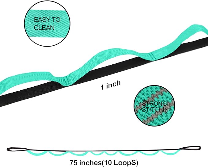- 【DIMENSIONS】: Length 76" / Width 1", 10 Non-elastic loops.