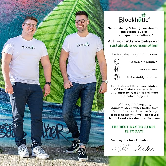 Blockhuette Vacuum Insulated Stainless Steel Water Bottle I 34 oz I Wide Mouth Insulated Metal Bottle for Cold Drinks I BPA-Free I Perfect for Travel, School, Kids, Adults, Water Canteen