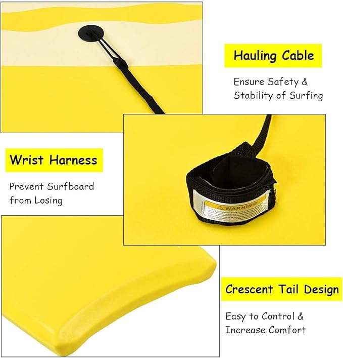 - 【Strong Buoyancy & Light Weight】Strong buoyancy and sturdy construction give our body board a strong load-bearing capacity. It is not easily deformed and faded and can be used for a long time. The light weight makes it easy to carry, so you can take it wherever you go.