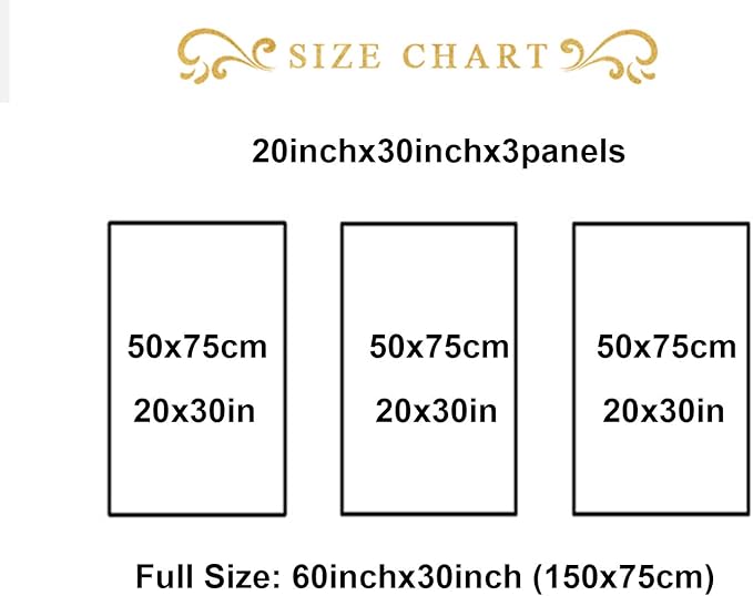 - Wall art size: 20x30inchx3pcs (50x75cmx3pcs)