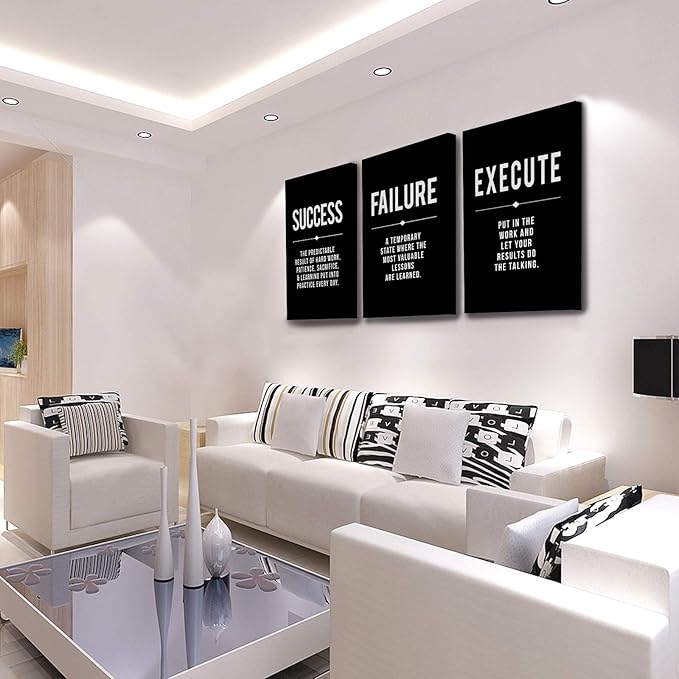 Framed Canvas Wall Art Success Quote, Office Wall Art, Black Large Poster, Positive Motivational Set of 3 Prints, Execute Failure Definition, Inspirational Print (A-3pcs,20x30inchx3pcs)