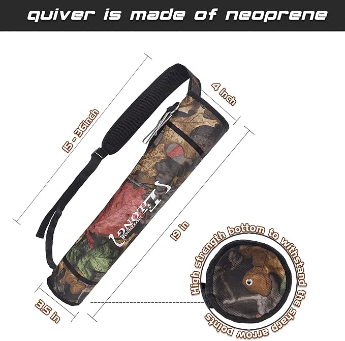 • Adjustable - The straps of ELONG Arrow Quiver can easily be adjusted from 15" to about 34" to fit Youth and Adults.