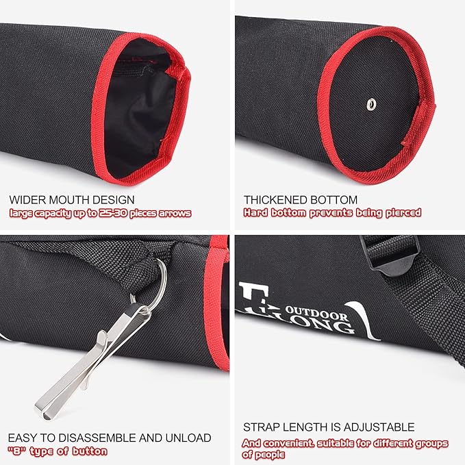 - Features - Padded Shoulder Strap for extra comfort; Hardened bottom preventing tearing from the arrow points and Breathable Bottom