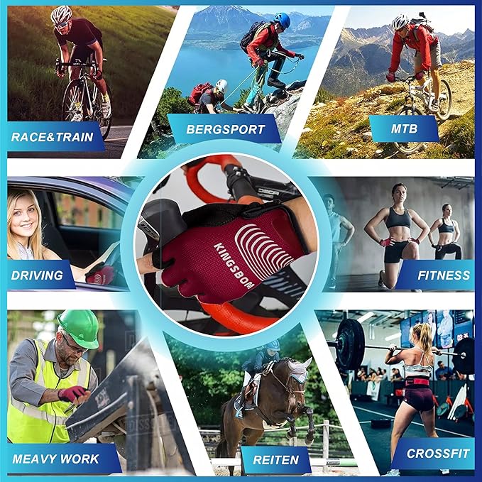 KINGSBOM Breathable Cycling Gloves, Shock-Absorbing Bike Gloves with Light Silicone Gel Pad, Anti-Slip Bicycle Gloves for Men and Women