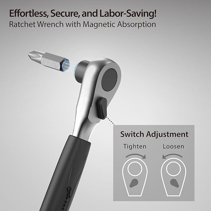 - Included Components : Mini 72-teeth ratchet wrench Extension rod S2 bit set (12 pieces)