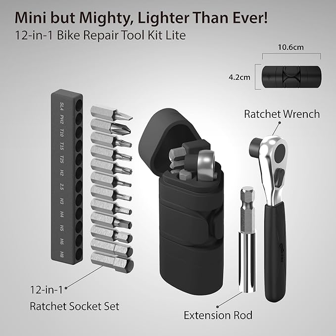 BONE Bike Portable Tool Kit Lite, 12-in-1 Mini Bicycle Repair Capsule, Scratch-Free & Waterproof Silicone Bag for Emergency Maintenance, Cycling Accessory with Ratchet Wrench for Biking & Home Repair