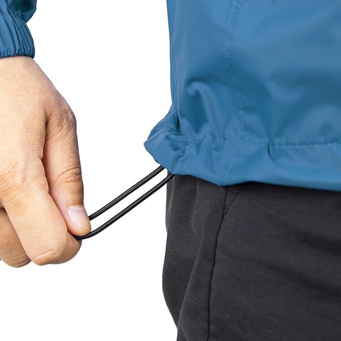 - ?�Unique Design?‘Lightweight lite rain jacket elastic cuffs prevent the rain drops to the cuffs; Adjustable drawcord hood to prevent yourself from being wet; The hem contains elastic rope for warmth and keep you dry. Suitable for casual wear, outdoor sports, outdoor work, traveling, cycling, hiking, climbing, fishing, camping, hunting.