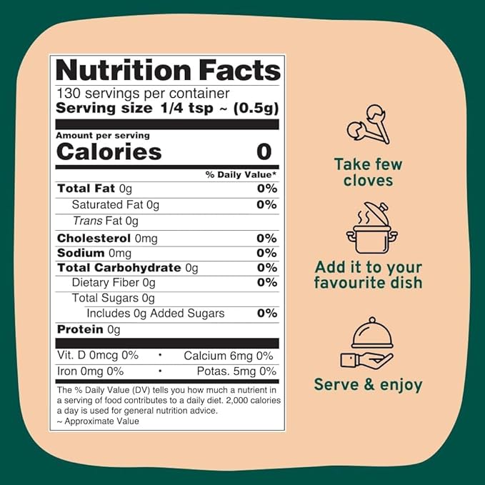 - PURE CLOVES FROM KARNATAKA - Our whole Cloves are NON-GMO and Gluten-free, without any added preservatives, artificial flavors or colors. Highest and purest quality cloves, ethically sourced from prime harvest gardens of Karnataka, India.