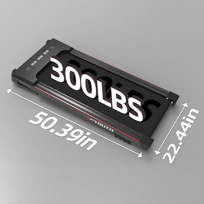 - 【NON-SLIP RUNNING BELT & SHOCK REDUCTION SYSTEM】This walking pad with 15.75" x 41.34" large-area shock-absorbing and non-slip rubber running belt that using this walking machine in an apartment will not disturb other residents. The treadmill is not only suitable for running, but also very under the table for office use. Maximum weight: 300lbs.