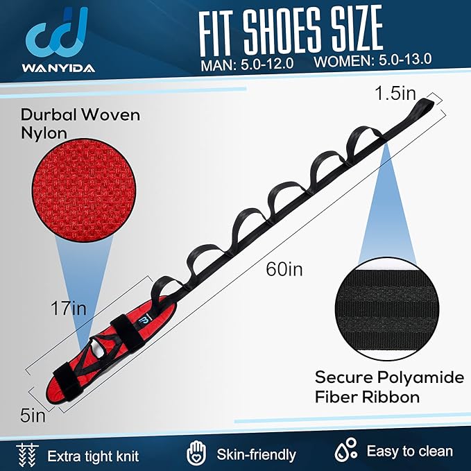 - Versatile & Easy-to-use: This stretching strap works by pulling your toes and expanding the tissue and muscles in the heel and arch area. Ideal for yoga practitioners, dancers, athletes, rehab patients. This leg and foot stretcher is fit for most adult shoe sizes range from 5 to 13 in women’s sizes and 5 to 12 in men’s sizes.