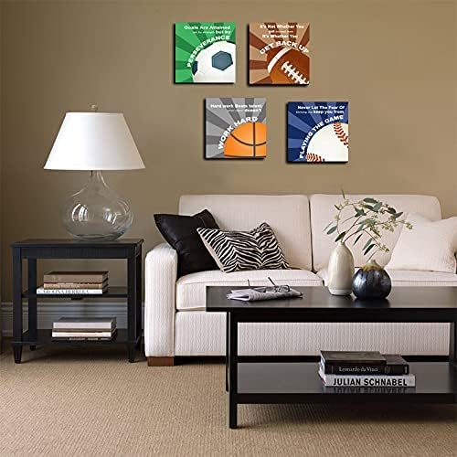 KaiLeFu-Colorful Sports Inspirational Quotes Framed Canvas Wall Art -Motivational Basketball Baseball Soccer Football Quotes Sport Art Wall Decor for Kids Boys Room Classroom -12"x12"x4pcs