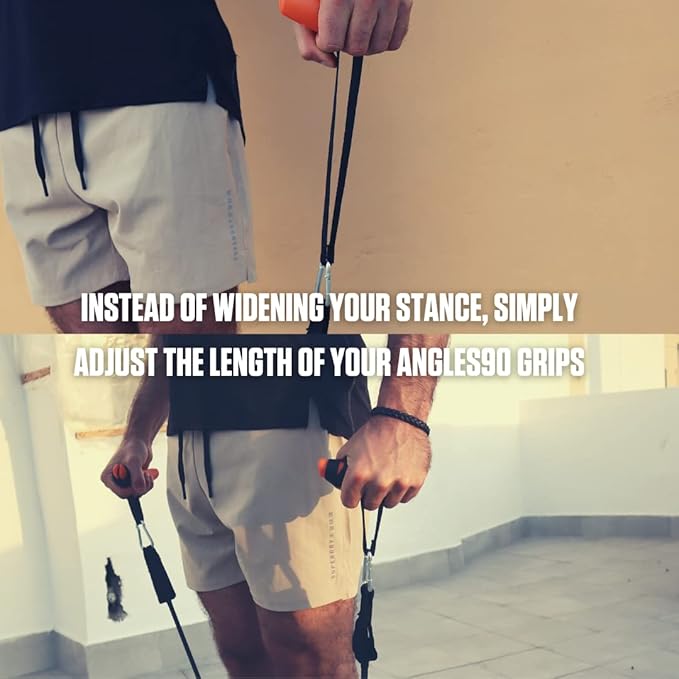 - Adjustable Resistance: Easily modify the resistance level by adjusting the strap of your Angles90 grips, ensuring efficient workouts without altering your stance. The length-adjustable feature supports various strength training needs