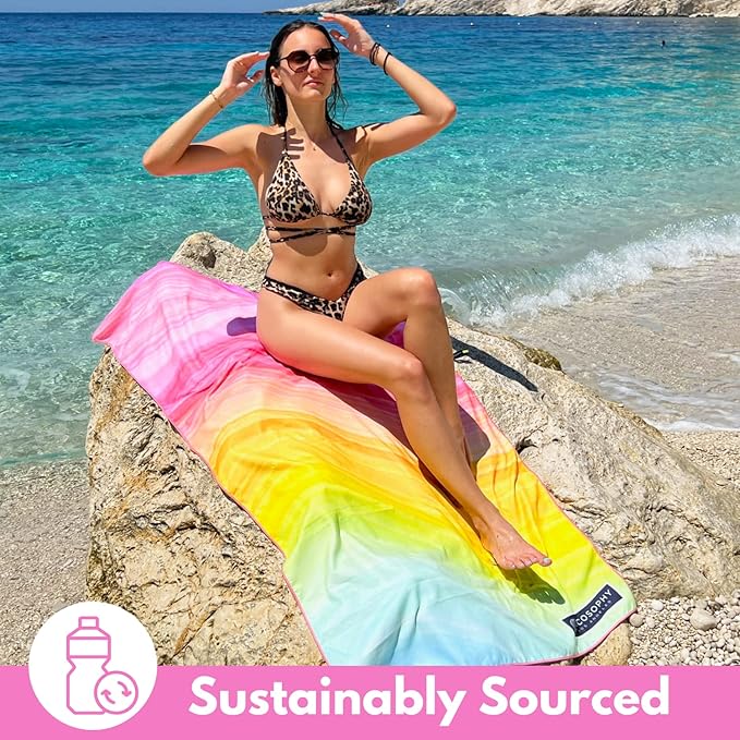 ECCOSOPHY Microfiber Beach Towel - Sand Free Towels are Quick Dry, Light Weight, Super Absorbent - Perfect Pool, Travel, Cruise, Camping Essentials - Oversized Extra Large for Adults 71x35 in
