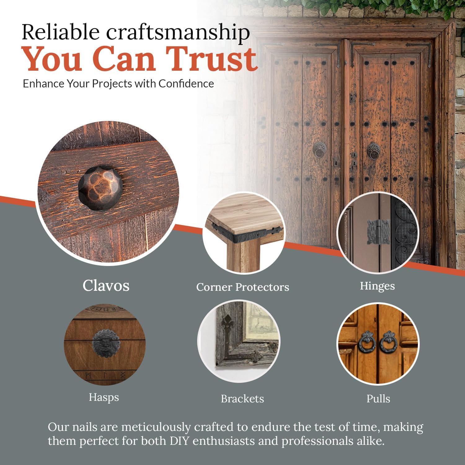 - PREMIUM FABRICATION: Each iron nail is meticulously MIG welded by hand to ensure maximum strength and longevity. Unlike competitors who use less durable spot welding, our nails are built to withstand the elements, making them ideal for exterior shutters, faux wood beams, and other applications requiring robust and reliable decorative hardware.