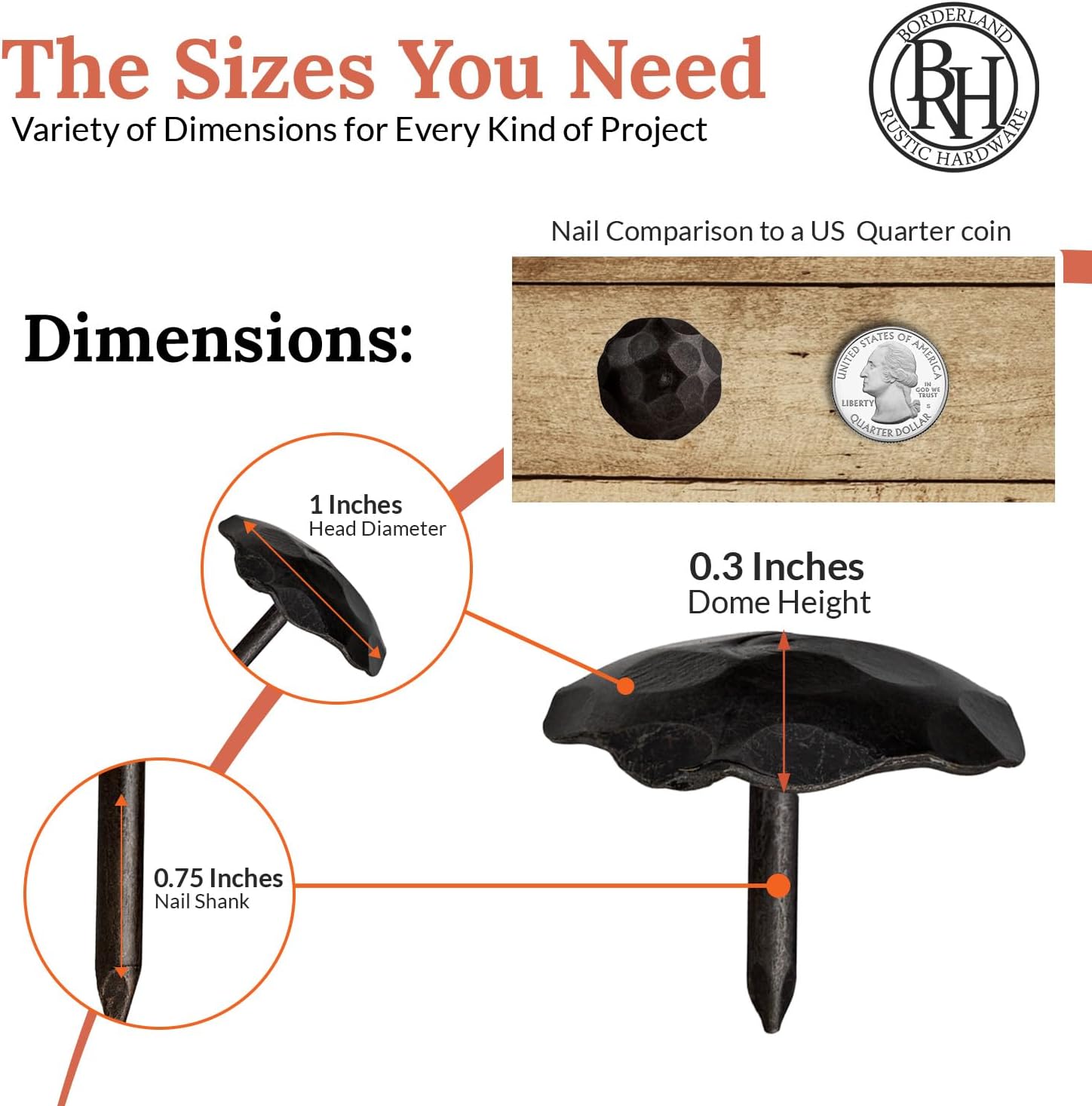 10 Pack 1" Small Round Head Iron Clavos Decorative Nails – Sealed Unfinished – Handmade Handmade Rustic Round Fasteners for Farmhouse Shutter, Barn Door, Shutters and Gates – Ornamental Wood Accent