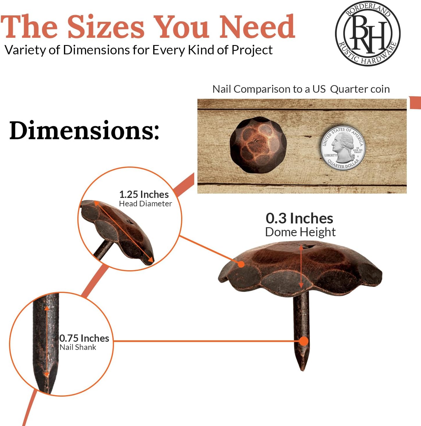 10 Pack 1.25" Round Head Iron Clavos Decorative Nails – Oil Rubbed Bronze – Handmade Rustic Round Fasteners for Farmhouse Shutters, Faux Wood, Barn Doors, Shutters, Gates – Ornamental Wood Accent