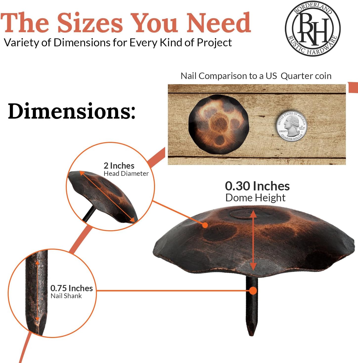 10 Pack 2" Round Head Iron Clavos Decorative Nails – Oil Rubbed Bronze – Handmade Rustic Round Fasteners for Farmhouse Shutters, Faux Wood, Barn Doors, Shutters, Gates – Ornamental Wood Accent