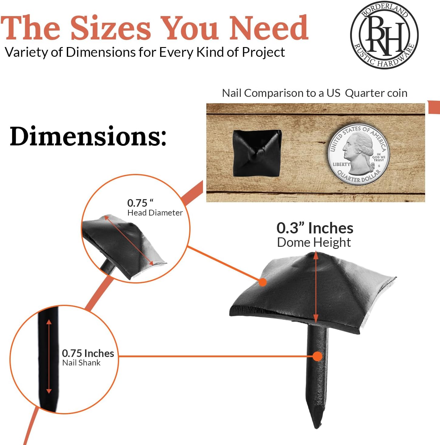 10 Pack 0.75" Square Head Iron Clavos Decorative Nails – Black – Handmade Rustic Square Fasteners for Farmhouse Shutters, Faux Wood Beams, Barn Doors, Shutters, and Gates – Ornamental Wood Accent